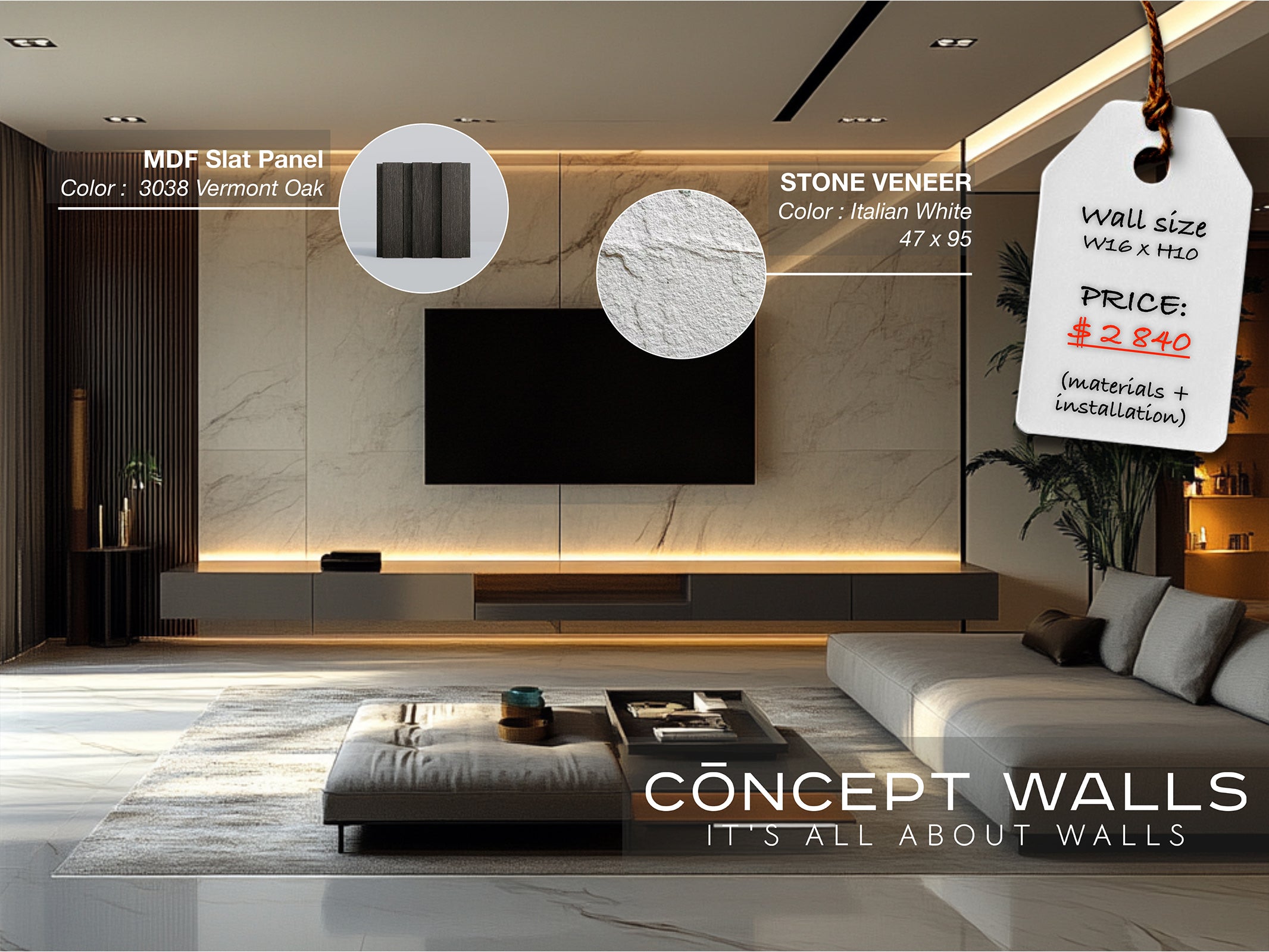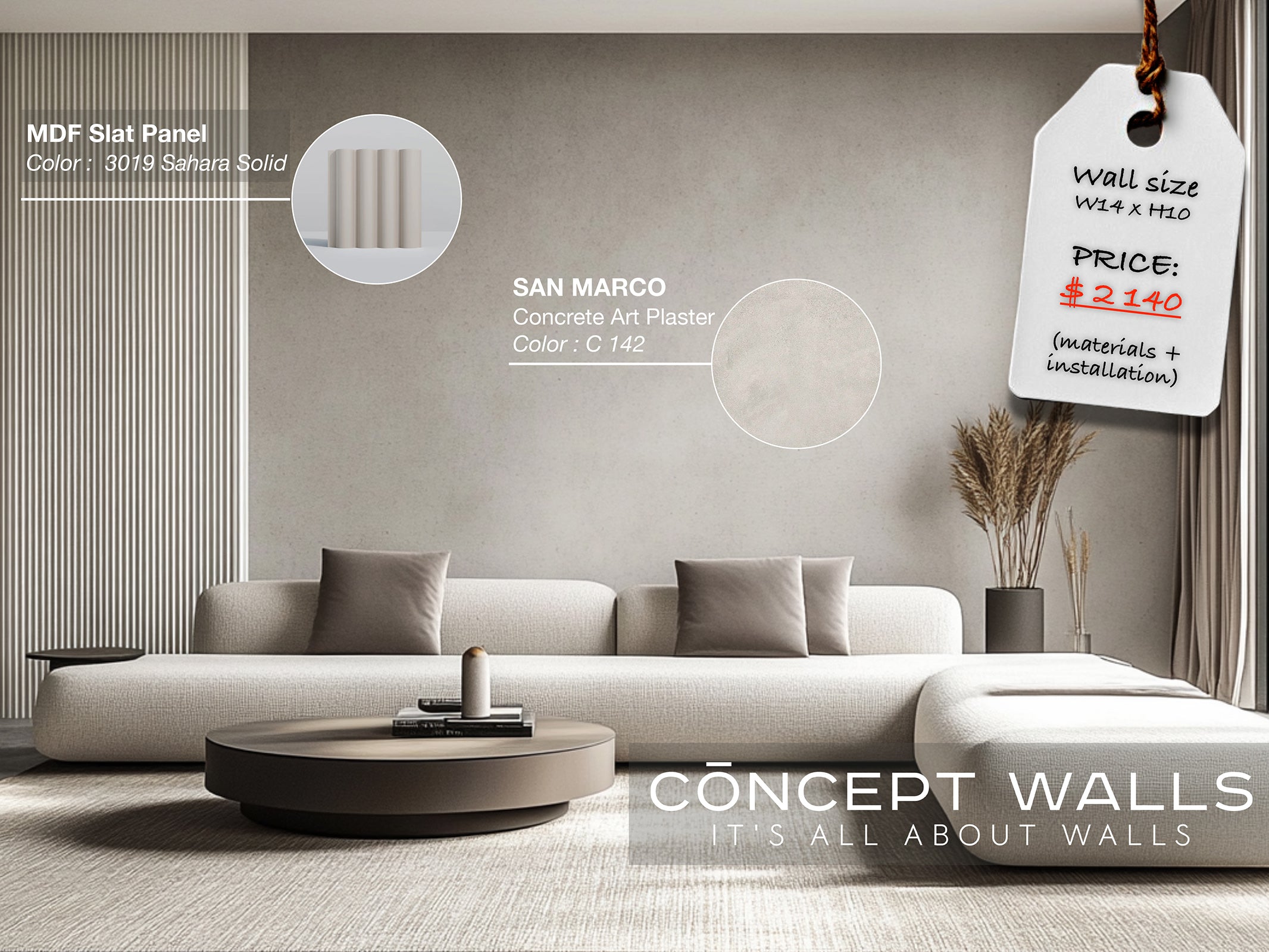 We’ve curated ready-made interior concepts, combining materials from Concept Walls store to inspire you or bring directly into your space.