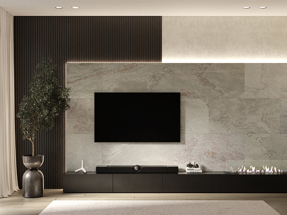 Is an innovative 100% real stone veneer consisting of an ultra-thin natural stone layer and a carrier reinforced with glass fibres or cotton. Is extremely durable and suitable for both indoor and outdoor use. You can also create unusual living environments with stone in wet areas such as bathrooms or showers.